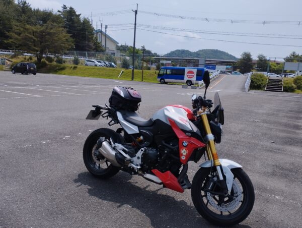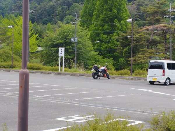 バイクは「るり渓温泉駐車場」に駐めました。「深山ハイキングコース」の登り口からは1km程離れているのですが、無料なのが決め手でした。わたしは温泉施設よりハイキングコースに近い駐車場に駐めたので、周りはガラガラです。