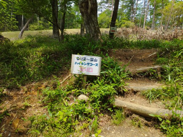 「深山ハイキングコース」を降って、登り口に戻ってきました。山頂で会った熟年夫婦は、わたしと反対の方向から来ていたので、ハイキングコースは縦走可能なのだと思いますが、バイクを「るり渓温泉駐車場」に駐めているので、戻らないわけにはいかないのでした。