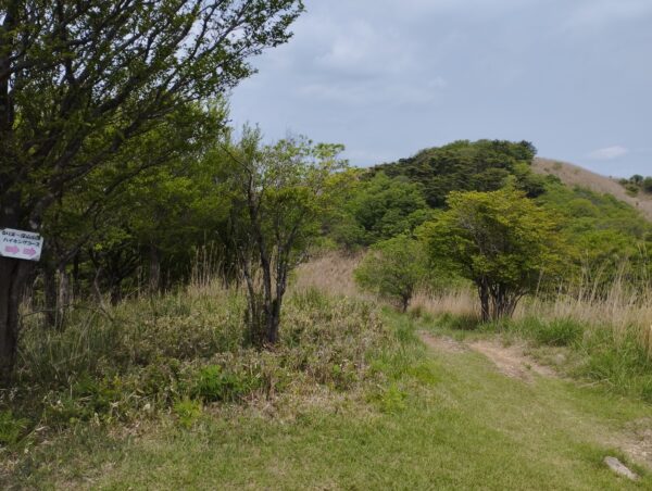 ハイキングコースに入って暫くはゴルフ場に沿って進みます。ハイキングコースには適宜案内看板が立っており、ロープでコースが示されているので、進路を迷うことはありません。