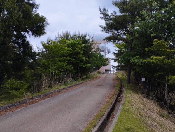 観測所には保守用と思われる道路が通っていて、ハイキングコースも最後に合流します。まあ、合流して200mくらいで山頂ですけど。