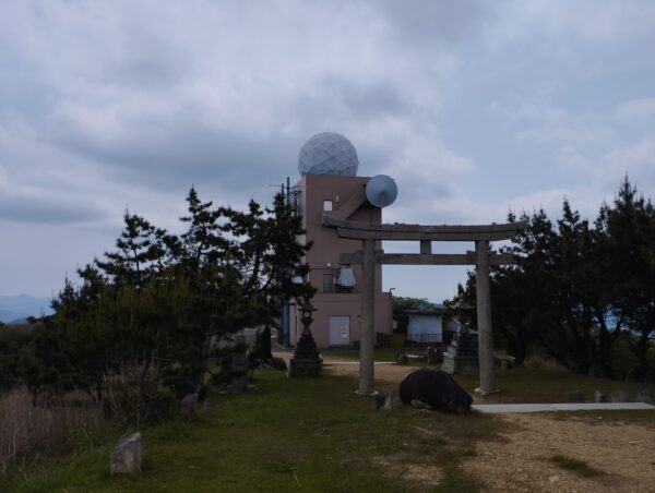 「深山」山頂には「深山神社」と「深山レーダー雨量観測所」があるらしく、前方のプラネタリウムみたいなのが観測所のようです。