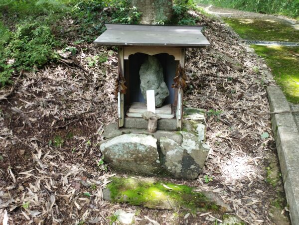 参道を登っていくと、左手に小さな祠があります。お地蔵様かとも思いましたが、石像の前の札には「天照大神」とありました。