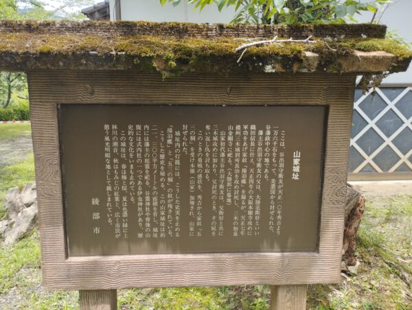 次は「山家城址」と「甲ヶ峯城」に向かいました。「山家城址」は、現在「「山家城址公園」として整備されており、バイクも公園内に駐めました。