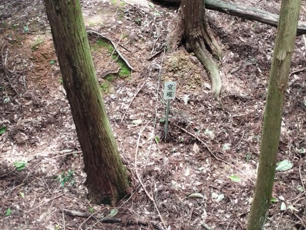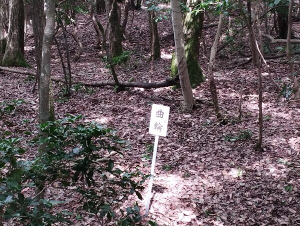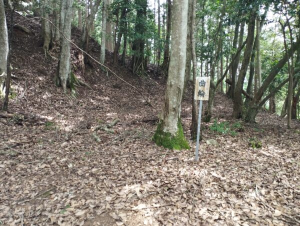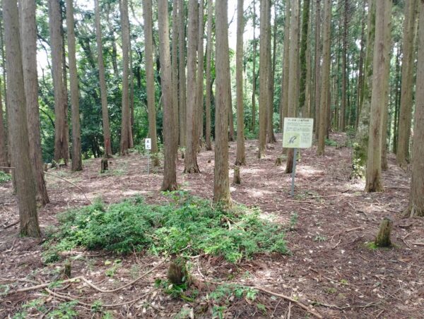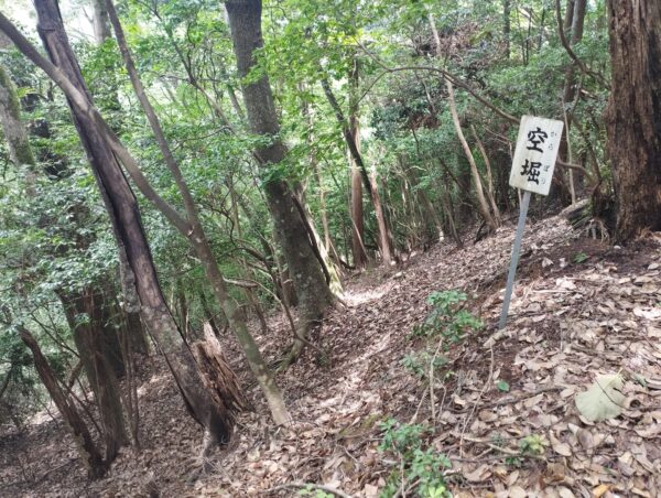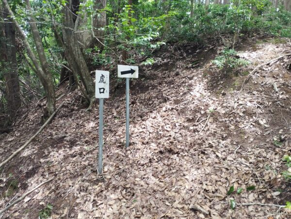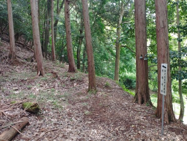 山を直登りして、本来の登城道に戻りました。整備されていると言ってもなんとなく登城道かなあ、と言うレベルなのですが、案内看板が適宜設置されているので迷うことはありません。