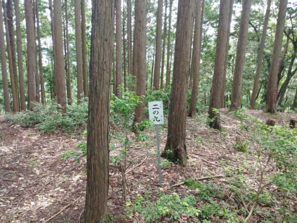 城域に入ると「空堀」「曲輪」「空堀」「虎口」「二の丸」という案内看板があり、城址の大きさが伺えます。やっぱり城は防御が重要なのだと、2つの「空堀」を見て思いました。