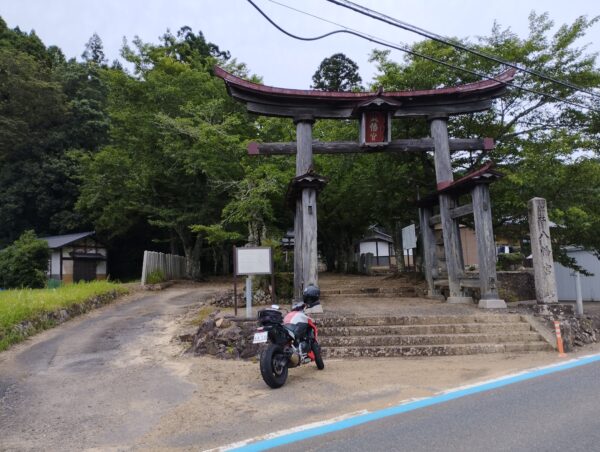 昼食後は、本日の寺社巡り先である「八幡宮」に向かいました。「八幡宮」は府道1号線(綾部小浜線)沿いにあります。バイクは鳥居前に駐めました。
