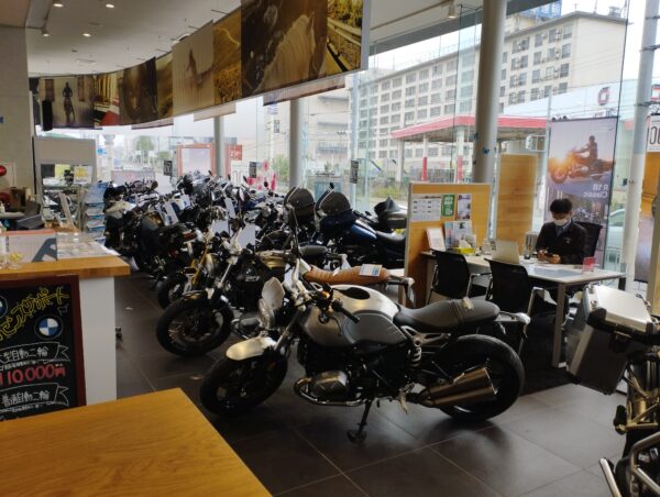 久しぶりに「BMWモトラッドミツオカ」に来ましたが、ショールームに展示されているバイクが多かったです。売れる見込みがあるから仕入れているんでしょうね。