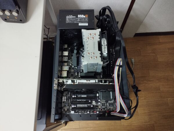 パソコンを新しく組み直したのは、6月にブログでも記載しました。それで古いパソコンをどうしようか悩んでいました。ミドルタワーなので場所を取るし、そもそも使用する可能性が低いですしね。それでも捨てるのは惜しいので、アマゾンで中華製のマイニング用オープンフレーム(約2,000円)を購入して、とりあえず組んでみることにしました。元のケースは粗大ゴミに出す予定です。