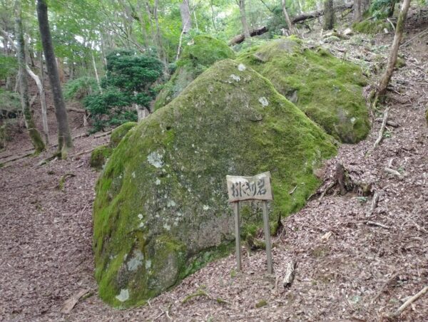 この岩は、おそらく「九界岩」です。「界」の文字が見えますね。このように愛称のない岩には看板は設置されていないようです。