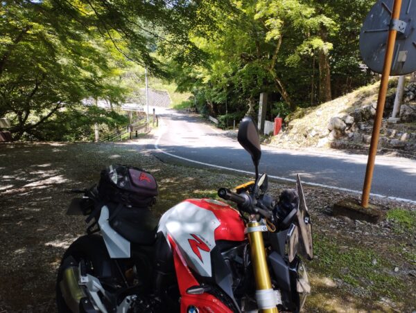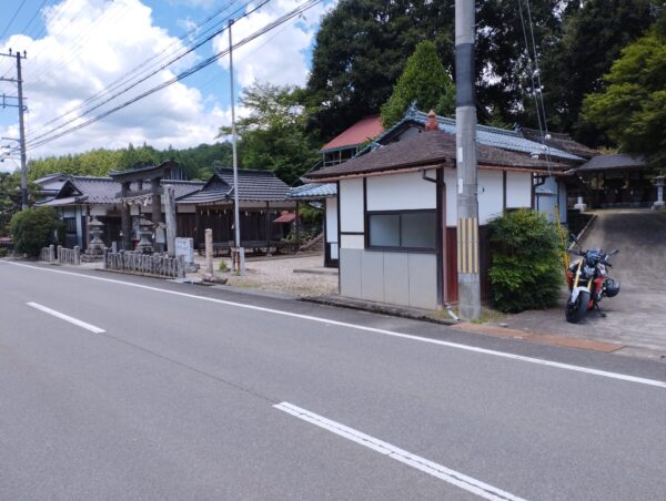 次は「白山(しらやま)神社」に向かいます。「白山神社」にはツクバネガシの御神木があります。バイクは府道78号線沿いの駐車場に駐めました。