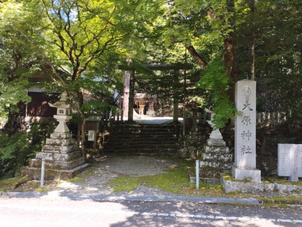 南丹市美山町方面なので、いつもの「ローソン明治国際医療大学前店」でコーヒー休憩と昼食の調達を行い、まずは「大原神社」に向かいました。