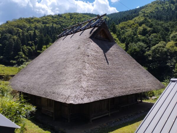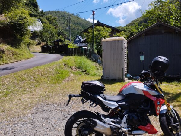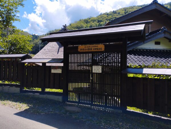 御神木のケヤキの木を見る前に「石田家住宅」に向かいます。「石田家住宅」は「日本最古の農家型住宅」とのことです。こちらも駐車場があったので、そこにバイクを駐めました。