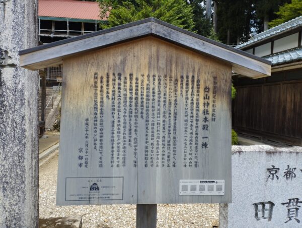 正面の鳥居前から見た「白山神社」です。本殿は修復工事中でした。