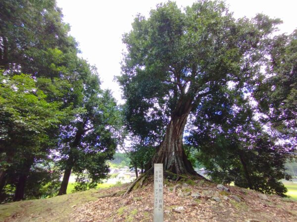 お目当てのツクバネガシの御神木は神社の裏の小高い丘の上にあり、この丘は「白山神社古墳」なのだそうです。このカシの木も「京都の自然二百選」に選ばれていました。
