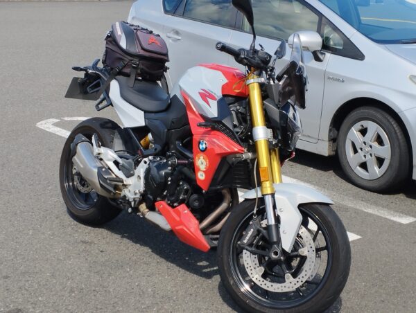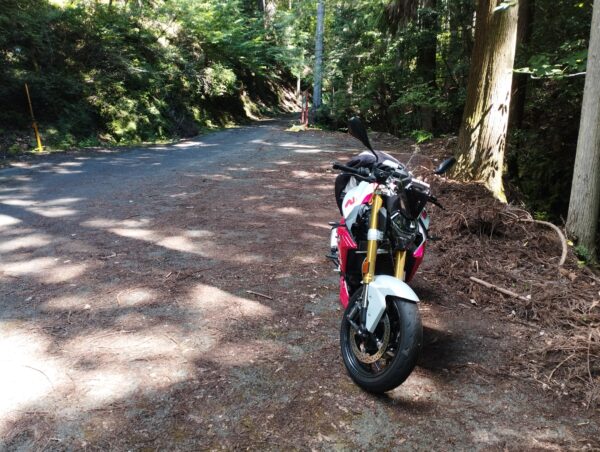 バイクを駐めた場所に戻ってきました。往復に約10分かかりました。まだ11時前だったので、実家に寄って昼食を食べてから帰りました。