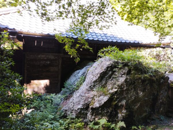 「地蔵堂」の由来はわかったけど「玉岩」って何? ということで「本堂」の裏に回ると大きな岩がご神体として祀られています。これは落石でここにあるのではなく、この岩をご神体として「玉岩地蔵堂」が建てられているみたいでした。