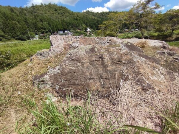 たんぼ道を真っ直ぐ進んで、突き当たりを右に行くと「国師岩」が見えてきます。なかなか巨大な岩でした。このまま進んで正面に向かいます。