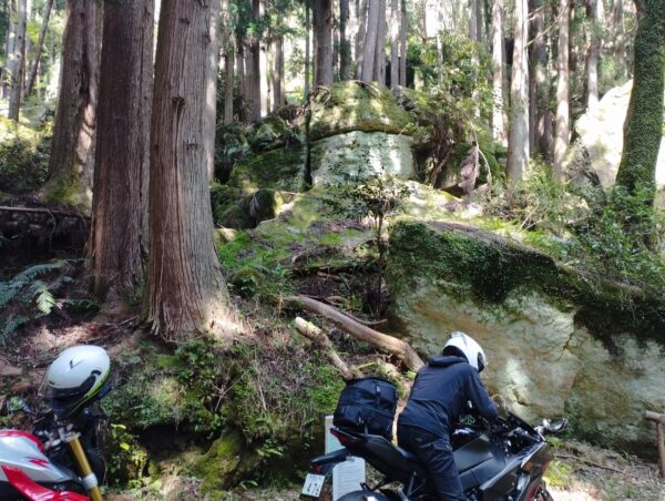 三重県熊野市にある「巨大岩群」です。まあ、山の中に巨大な岩がゴロゴロしてるだけですが・・・。わたし達もバイクを停めて写真を撮っただけで、次の「滝の拝」に向かいました。