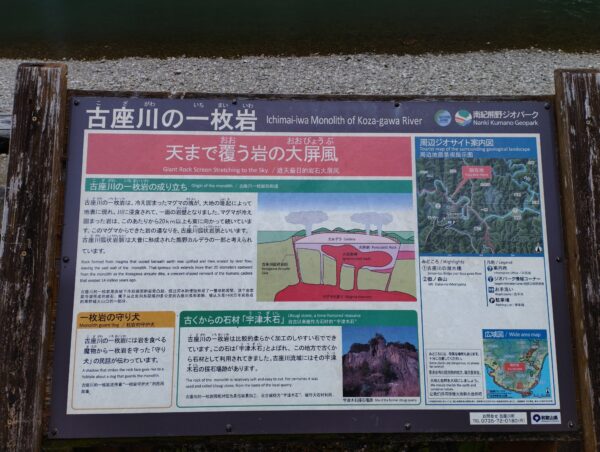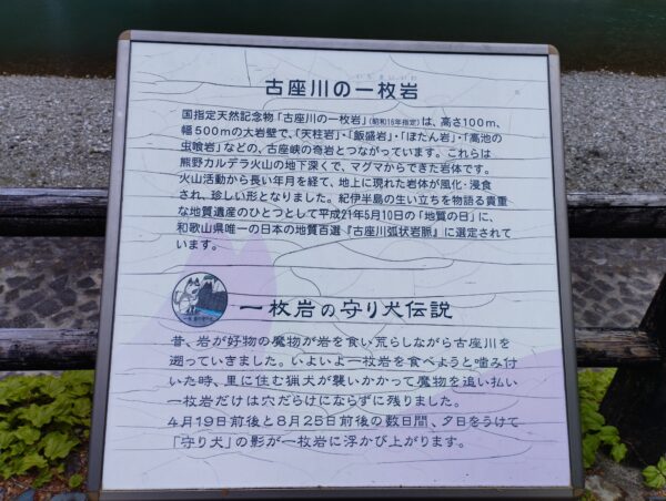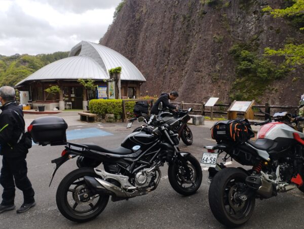 まずは和歌山県東牟婁郡古座川町にある「古座川の一枚岩」です。バイクは「道の駅 一枚岩 モノリス」に駐めました。