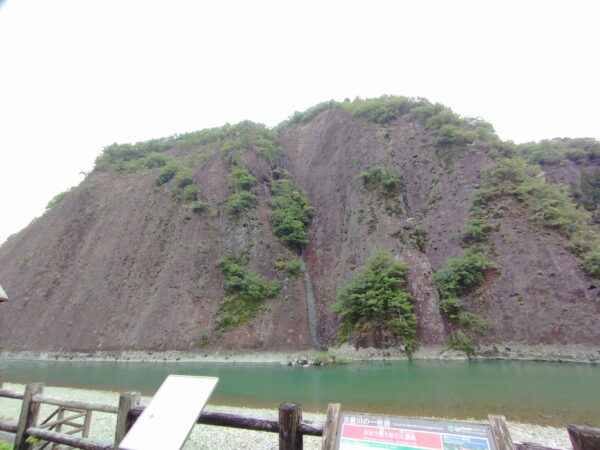 「古座川の一枚岩」は、高さ100m、幅500mの大岩壁です。誰か素登りで登って欲しいものです。