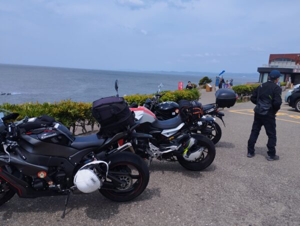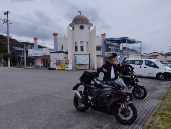 バイクは「天神崎丸山灯台」に面した駐車場に駐めました。ちなみに正面の「日和山」は標高28mだそうです。登山口もあったので、登れば良かったかもと少し後悔しています。