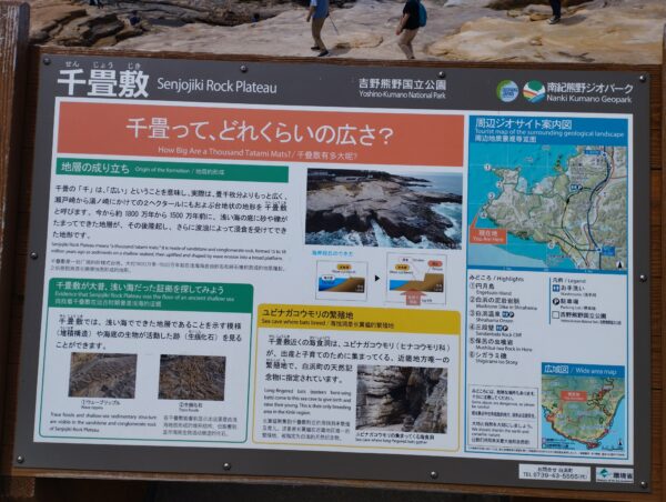 次は和歌山県東牟婁郡白浜町にある「千畳敷」です。バイクは駐車場に駐めました。この日は月曜日なのですが、「千畳敷」は観光客であふれていました。
