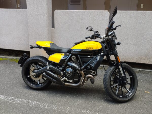 「BMW F900R」の書類や純正パーツを渡して、「Scrambler Full Throttle」の書類を受け取りました。車両説明は外の駐輪場ではなく、店舗内にバイクを持ってきて行ってくれました。なんやかんやで40分ほどで手続きは終了して、とりあえず自宅に戻りました。
