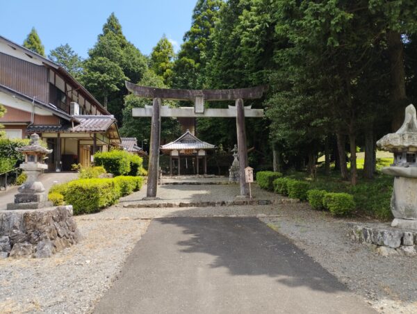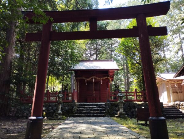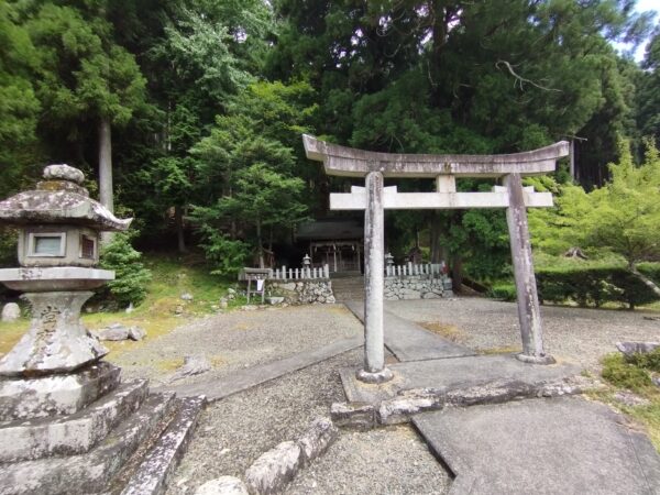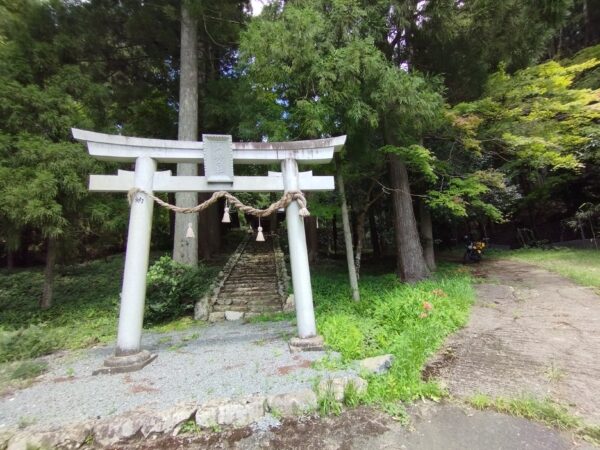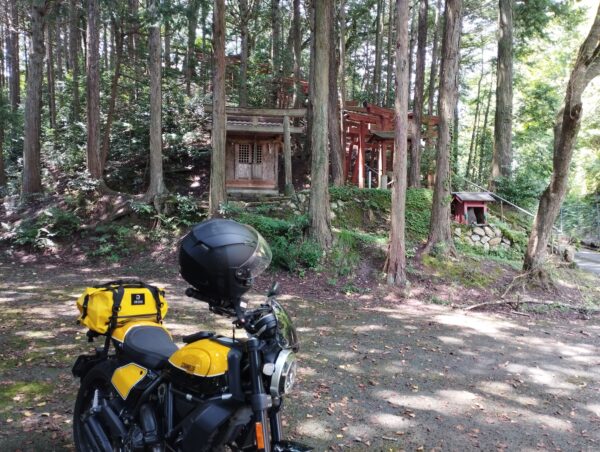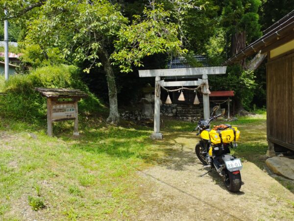 次は「山神神社」です。既に時刻が11時を過ぎており、日向にバイクを駐めるのが嫌なので、鳥居の右手の林道の日陰に駐めました。