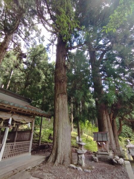 次は「大川神社」です。バイクは鳥居の前に駐めました。ここも杉が御神木でした。
