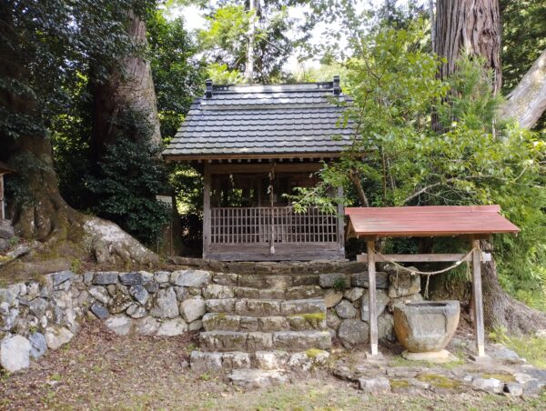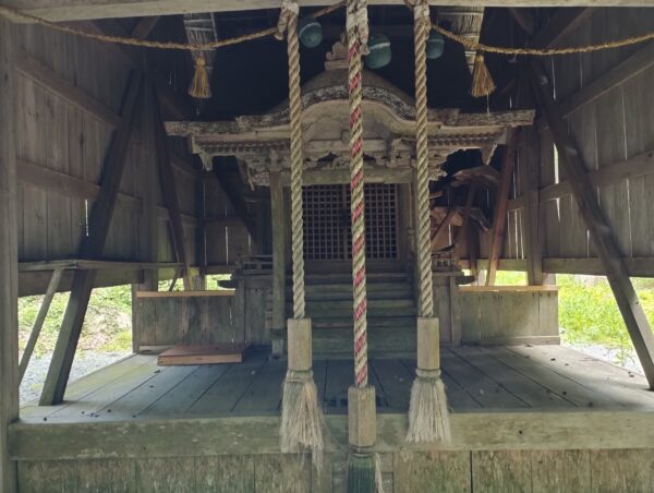 本殿は「大川神社」と同じくらいの祠でした。それなりに歴史があるもののようで、風雨から社殿を守るための囲いの中にありました。