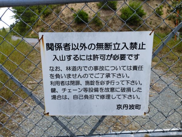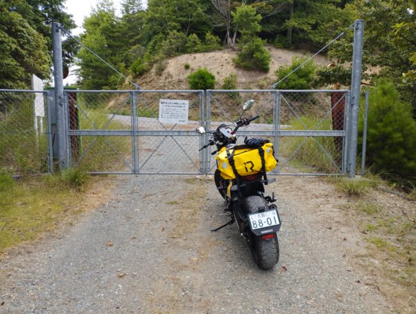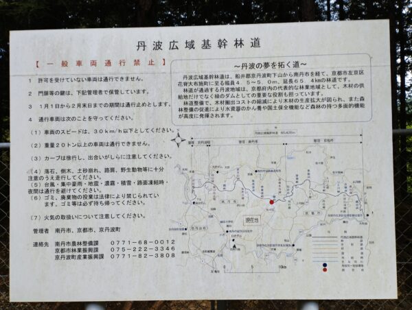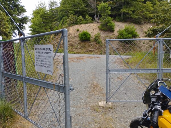 「丹波広域基幹林道」の終点?にはまたゲートがありました。こちらには南京錠はなく、閂を開けるだけで通過できました。こんなに長い林道を走ったのは四国の「剣山スーパー林道」以来ですね。