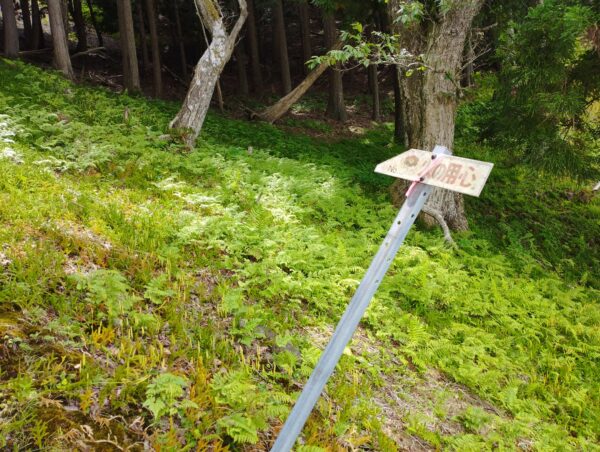 この「火の用心」の立て札に沿って小径が送電鉄塔まで続いています。そう言えば送電鉄塔の保守用の小径には、この立て札が必ずあるような気がします。