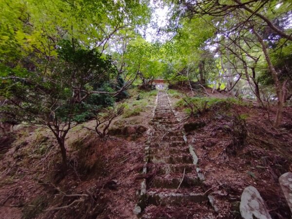 参道の階段も落ち葉や草で、参拝者が少ないことを感じさせます。