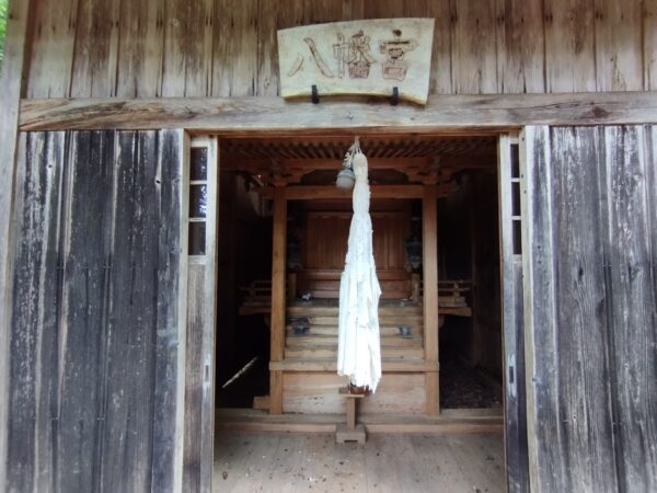 正面の扉は施錠されていないので、開けて「社殿」に参拝することができます。もちろんちゃんと閉めてから帰りました。小さな「社殿」ですけど、風雨にさらされないように大事にされているんですね。