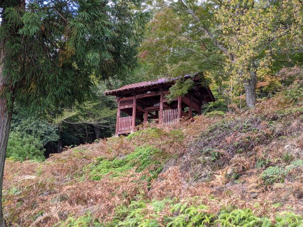 途中にある門みたいな建物。その横にベンチがあったので少し休憩しました。登り始めてからここまで約20分なのですが、すでに心が折れかけています。