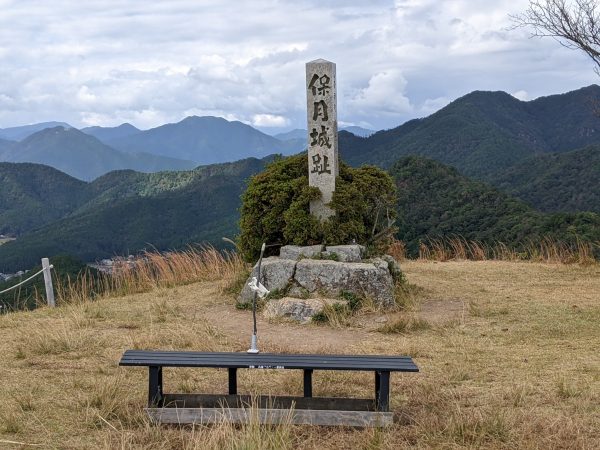 本丸跡に到着。ここまで40分かかっています。3回くらい心が折れかけました。下山してくる人がおっさん、おばさんでなかったら引き返していたかもしれません。(さすがに同年配に負けるわけにはいかないのです。)