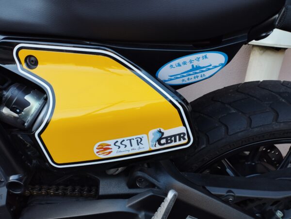 バイクを買い換えたとき「F900R」に貼っていたステッカーはなくなってしまいましたが、余っていたステッカー(SSTR)とM氏にいただいたステッカー(CBTRと大和神社)を貼っておきました。このバイクはステッカーを貼るスペースが少ないのと、車体が黄色なので色味が合いにくいのが難しいですね。