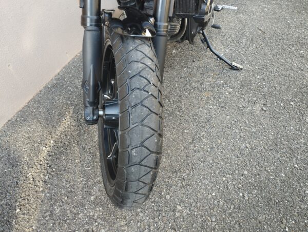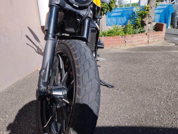 自宅に帰ってきて、改めで交換したタイヤを撮影しました。アドベンチャーバイク用のタイヤなんだけど、思ったよりスクランブラーにも似合いますね。