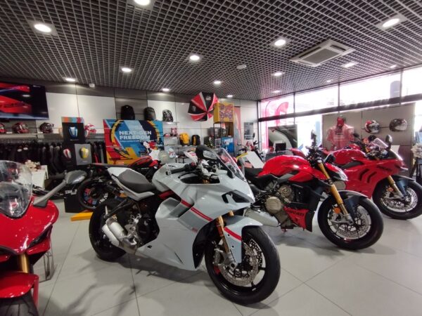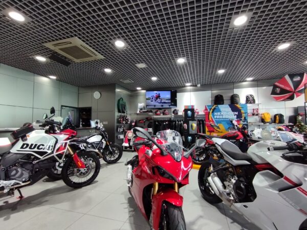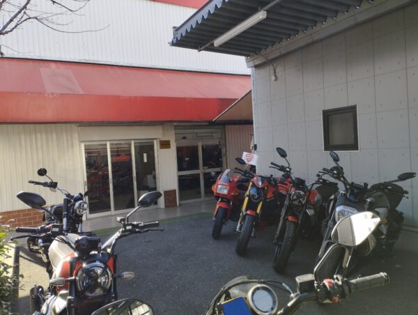先週の木曜日くらいに「ドゥカティ大坂ノース」にオイル交換の予約を入れていて、本日交換です。右手が店舗で正面が整備工場です。お客さんは誰も居なくて(月曜日の朝一なので当たり前かw)静かでした。