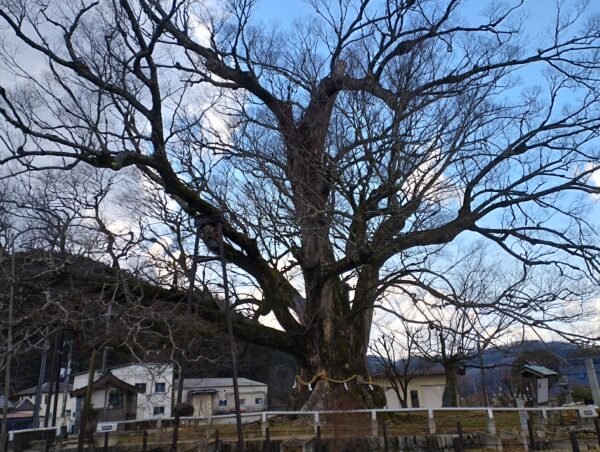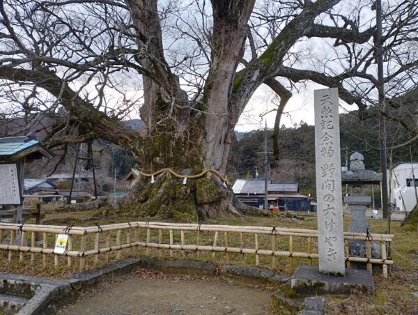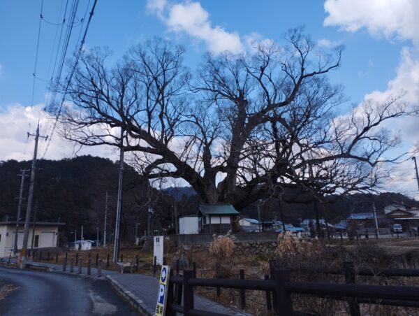 駐車場から徒歩で向かうとすぐに「大けやき」が見えてきます。予想より遙かに立派な大木です。
