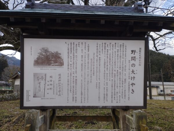 グーグルマップでは「野間の大ケヤキ」となっていましたが、説明看板等から「大けやき」が正しいと思われますので、修正依頼をしておきました。