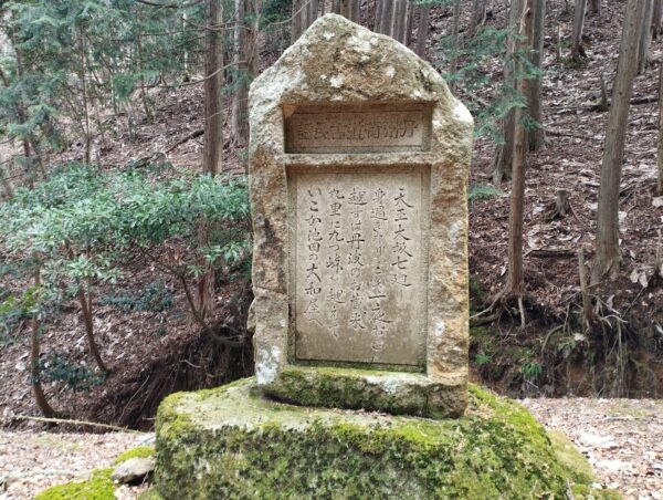 旧道を50m程歩くと「丹波街道古民謡」の石碑がありました。「天王大坂七廻り/見過ぎなりゃこそ一夜おき/越すは丹波のお蔵米/九里に九つ峠を越えて/いこか池田の大和屋へ」とありました。歌に詠まれるくらいですから、池田の「大和屋」って相当な大店だったんでしょうね。