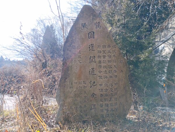 R173に戻り、道路を横断して「天王トンネル」が開通する前の旧道に入ってみました。旧道に入ってすぐのところに「国道開通記念碑」がありました。