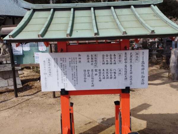 「高取神社」の最初の鳥居が現れました。右手に行けば神社の表参道です。ここで左手に行けば「高神の滝」という案内看板がでていたため、滝の誘惑に負けて左手に進みました。