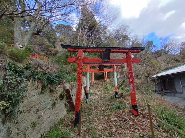 神社への参道もなかなかユニークです。狐が居るのでお稲荷さんなんですかね。