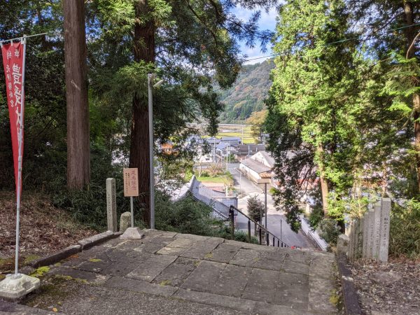 いちおう本殿はそれなりに階段を上った先にあります。階段の上から見下ろすとこんな景色です。