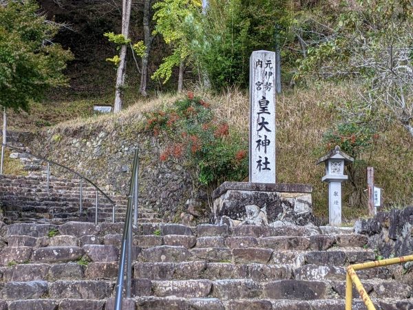 バイクで約3.2km走って、「元伊勢内宮皇大神社」です。こちらは「外宮」より高いところに本殿があります。駐車場は一日500円です。(「外宮」は無料なのに・・・。)
