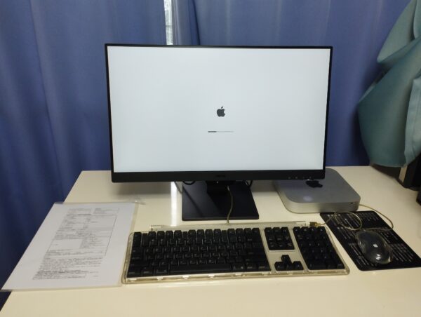 リコール対象品を分解して梱包後、交換品を組み立てて設置しました。23.8インチ、フルHD、IPSパネル、100Hzのリフレッシュレートの製品でした。アマゾンでの販売価格は18,000円(セール時は16,500円くらい)でした。14年前の液晶ディスプレイなんかゴミ同然なので、Mac Min廃棄時に一緒に処分しようと思っていたのですが、思いがけない事由から新品になってしまいました。