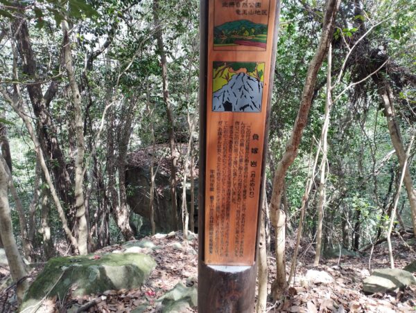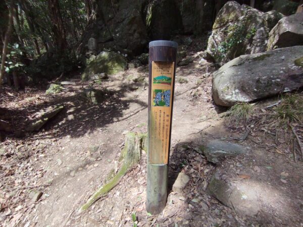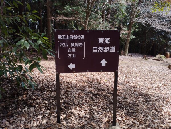 「竜王山」の周辺は「自然歩道」として整備されていて、案内看板も適宜設置されています。ここは後から訪問する予定の「穴仏」と「負嫁岩(およめいわ)」との分岐点です。