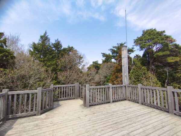 「竜王山展望台」に到着しました。バイクを駐めた場所から約10分です。この展望台は木造なんですが、風雨に晒されて傷んでいるか所がありました。